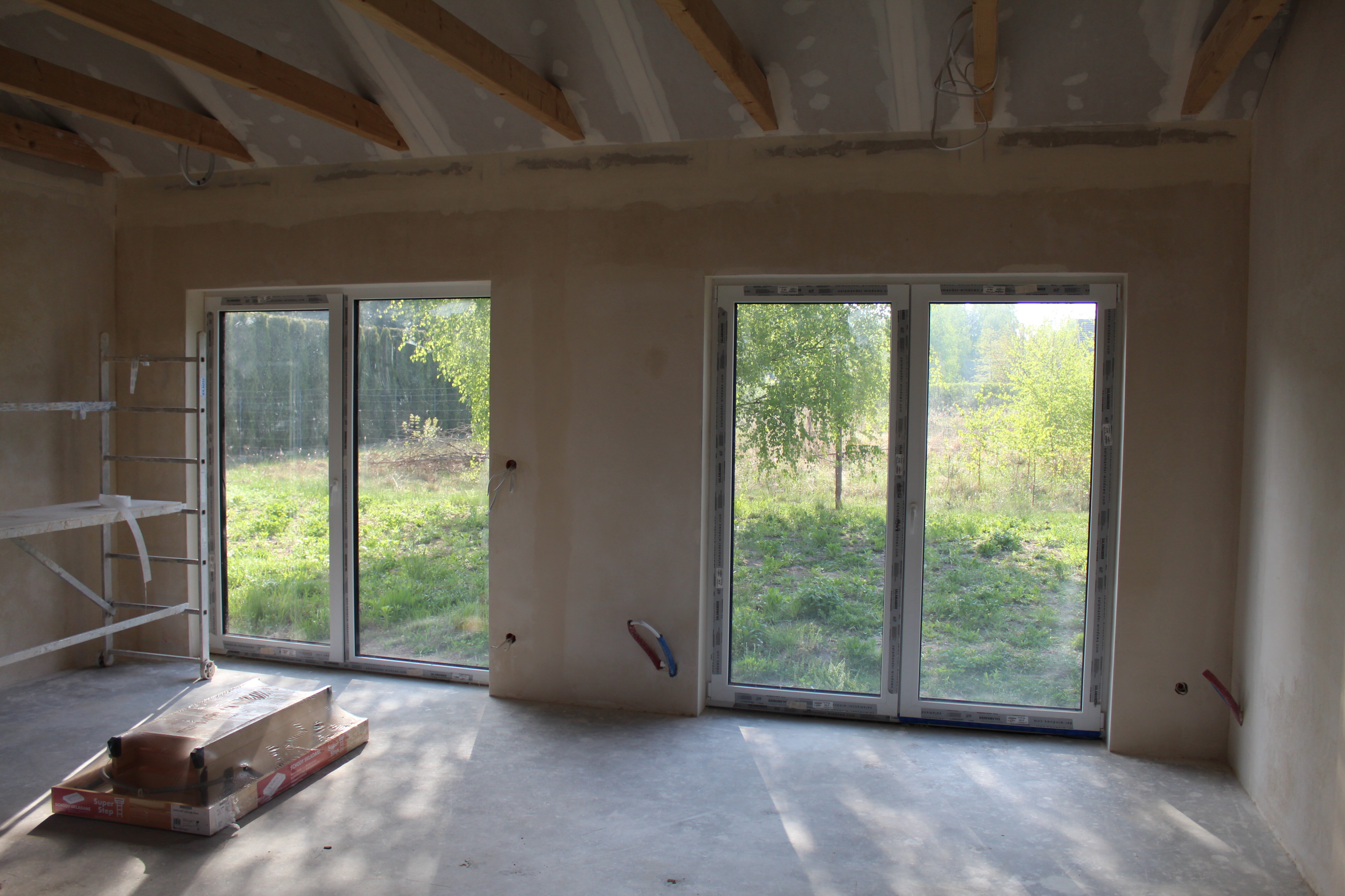 Over the course of 4 weeks, the Builder poured the concrete floor, applied plaster to the walls and installed plasterboard to the ceilings.